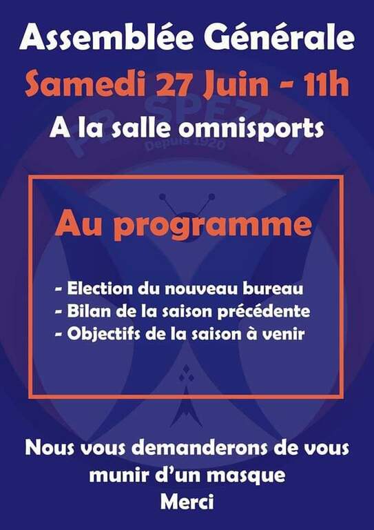 L'assemblée générale des Papillons Bleus de Spézet aura lieu le Samedi 27 Juin à partir de 11h à la salle omnisports.
